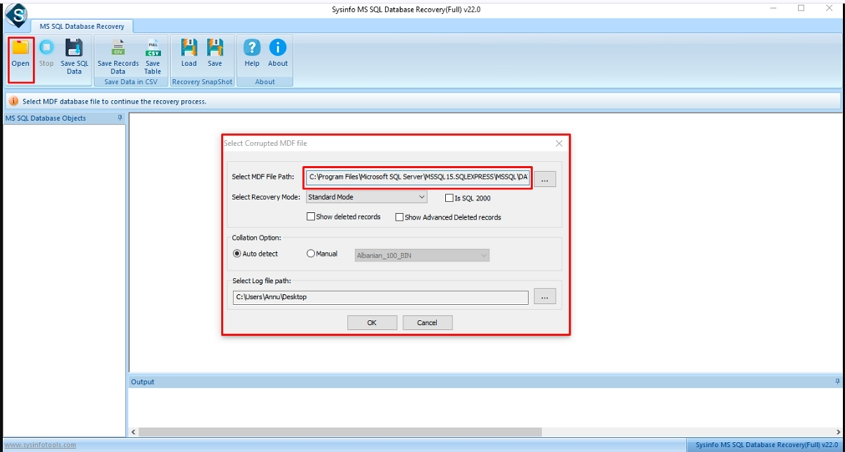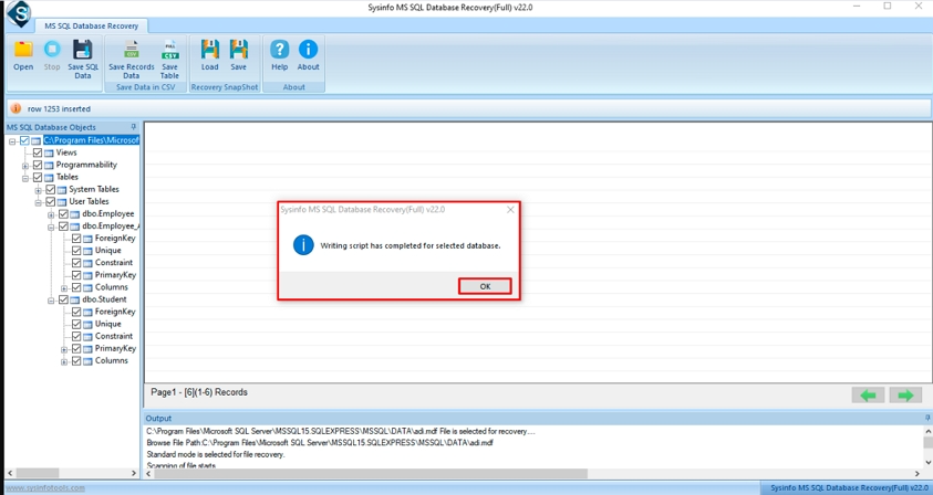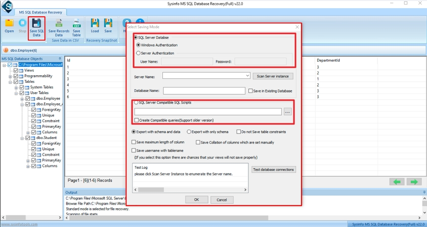 This tool provides an advanced option to save the recovered data in two different forms: SQL database file or MS SQL scripts as per your requirements. Additionally, In the case of saving into SQL scripts, you can define a location on your system.