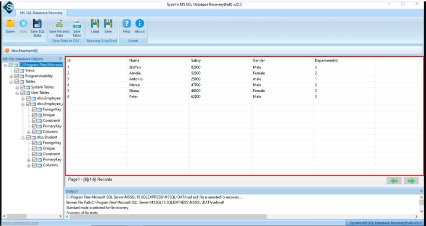 The rich preview of this SQL Repair tool allows users to check the preview of their recovered data in the preview panel. Once the file scanning is done, users can click the items one by one to check their preview before saving them into a new file.